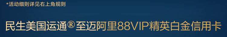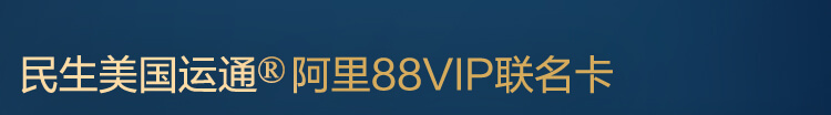 - 1、宣传海报中的“民生美国运通®阿里88VIP联名卡”为人民币单币版本,包含:“民生美国运通®心赏阿里88VIP标准白信用卡”和“民生美国运通®至迈阿里88VIP精英白信用卡”。