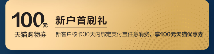 - 活动期间,申请民生美国运通®阿里88VIP联名卡(人民币单币版)而首次成为民生信用卡主卡持卡人的新客户,核卡30天内激活并通过支付宝绑定该卡片进行任意金额消费,即可获得100元天猫购物券。
