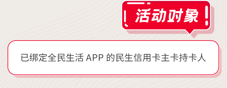 - 3) 客户达标所获活动权益需通过全民生活APP绑定民生银联62开头信用卡以及带有银联标识的民生双币种信用卡方可进行扫码付使用权益。