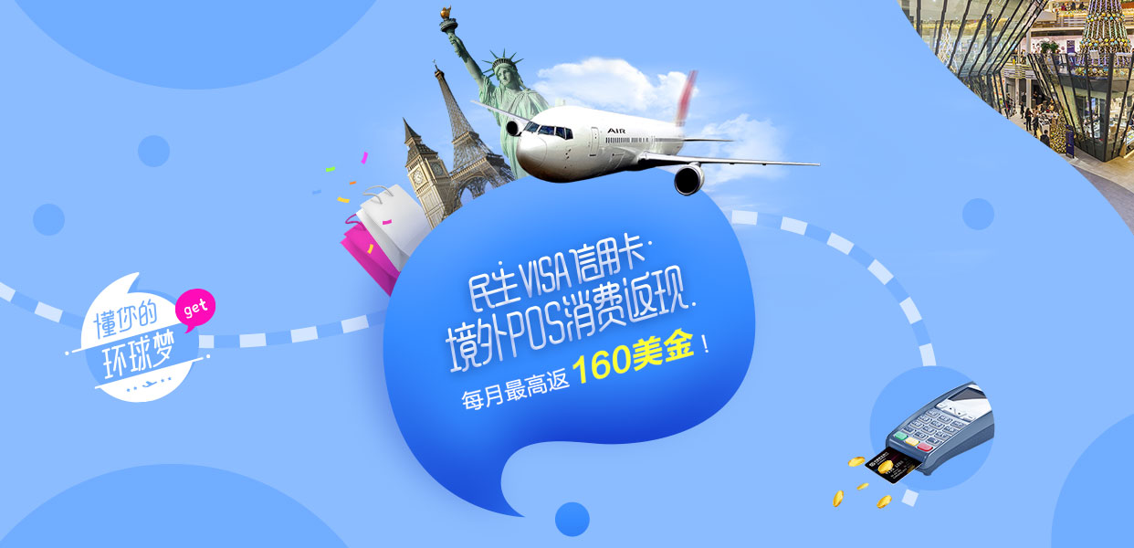 6.每张民生VISA信用卡每月返现金额不超过160美元。