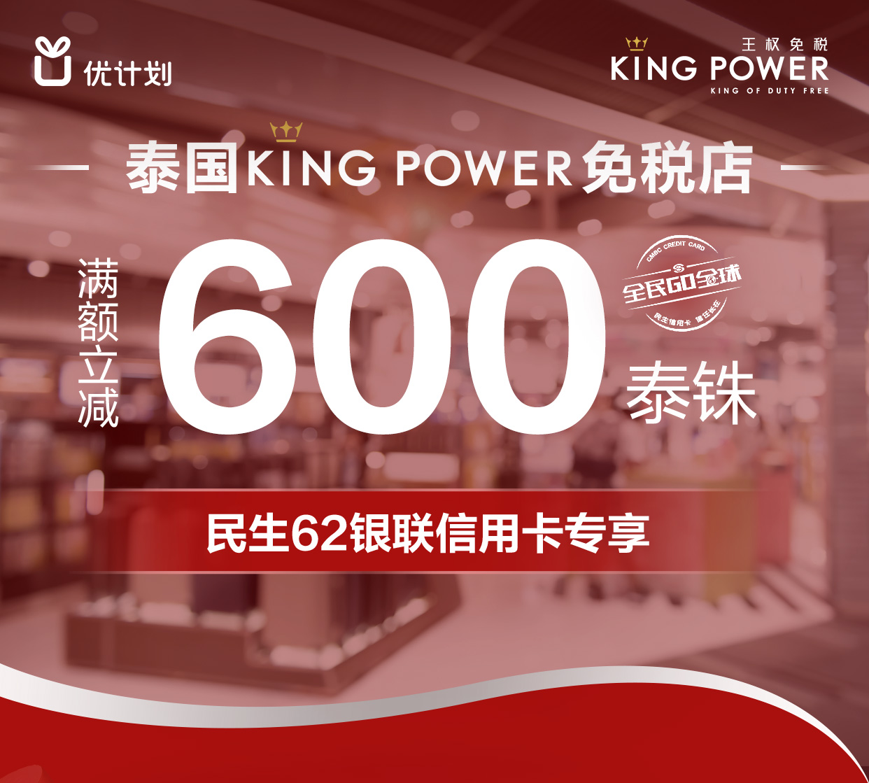 - 客户在泰国王权免税店消费达标后,主动向收银台出示已领取的优惠券码并使用民生62银联信用卡结算可享。