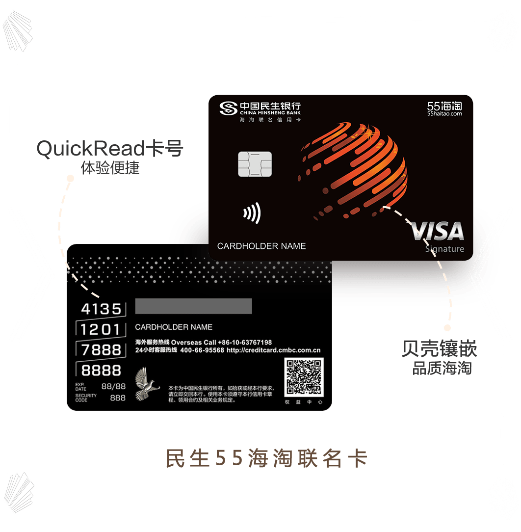 持民生55海淘联名信用卡,于全球VISA渠道刷卡消费,0外币交易手续费!刷卡购物0负担!