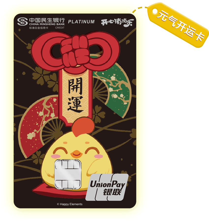 即日起,因申请该卡而首次成为民生信用卡主卡持卡人的新客户,核卡30天内激活卡片并任意消费1笔即可获赠一份价值50元的开心消消乐游戏道具大礼包。(礼品领取平台尚未开放,具体将另行通知)