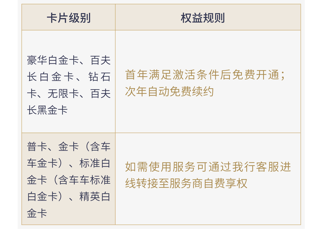 •持卡人需现场出示其民生银行信用卡供合作商核实身份。持卡人不得将服务权益转让他人。