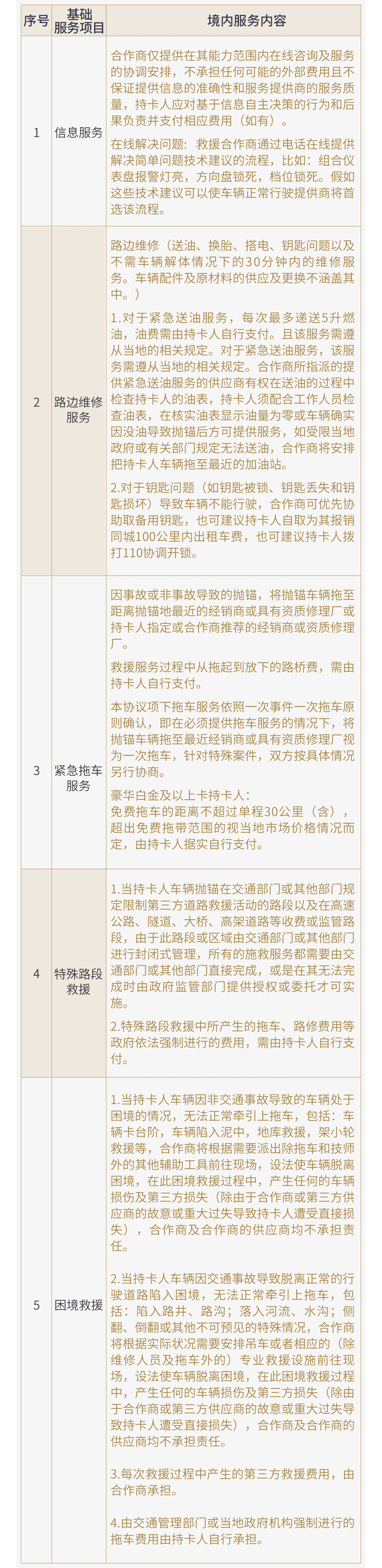在持卡人的要求及当地救援机构服务能力允许的情况下,本着为持卡人排忧解难的目的,向求助的持卡人提供特殊困境救援服务,根据难易程度收取相应服务费用。