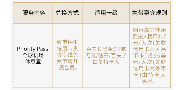 6、服务有效期截止至2025年12月31日,民生银行贵宾服务专线:400-810-8008。请以民生信用卡官方网站或“非凡礼遇”权益平台公示规则为准。