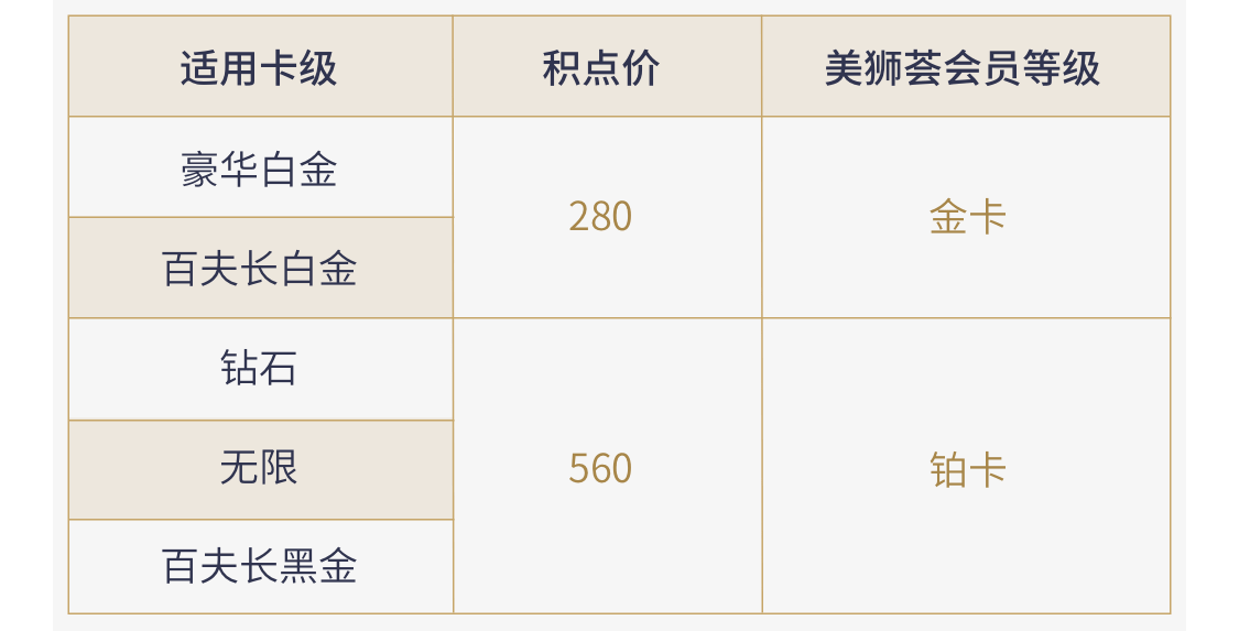 持卡人使用积点兑换成功后可点击“激活权益”,领取对应级别的钓鱼台美高梅酒店集团美狮荟会员,后续可在钓鱼台美高梅酒店官方渠道“官网或美狮荟M life微信小程序”享受美狮荟会员权益。