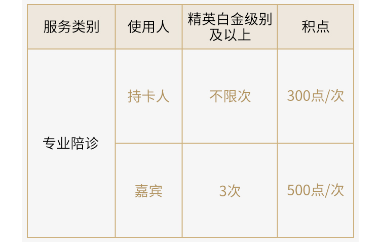 该权益兑换持卡人本人及嘉宾均可使用。兑换标准单位为:1人次,请至少在使用日期前2个工作日提交预约信息,最早可提前7个工作日进行预约。以便及时为您匹配最适合的陪诊人员。