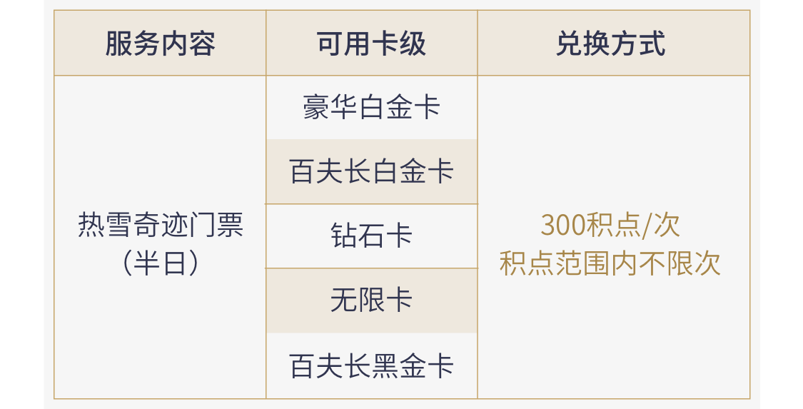 纯积点兑换服务仅限持卡人本人使用,不得转让他人,如发现有他人冒用,为确保您的用卡安全,我行将保留冻结您此项服务使用权益至少1个月的权利。现场兑换雪卡时,需出示您预约时提交的个人有效身份证件,出行前务必检查由场地工作人员验证通过后方能享受服务。