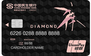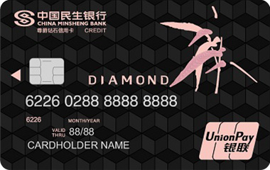 民生尊爵钻石信用卡(钛合金版):2688元/卡(成功核卡后收取)。该卡采用航天级别珍稀金属手工打造,卡面设计采用作为民生银行企业代表的“竹”作为主体元素,菱形底纹低调从容,玫瑰金精雕细琢,首开信用卡设计先河,匠心独运。