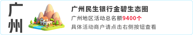 - 1、活动一同一用户每个满减力度使用民生借记卡/信用卡每月各限享1次;如客户同时持有民生借记卡和民生信用卡每月最高可享8次。活动二同一用户使用民生借记卡/信用卡每日各限享1次随机减优惠,每月最多各限享5次;如客户同时持有民生借记卡和民生信用卡每月最高可享10次。以支付成功顺序为准。活动一活动二合计总奖金池1,000,000元,每个城市活动总名额请参考商户列表,同一城市内所有参与活动的商户名额共享。活动名额有限,先到先得。