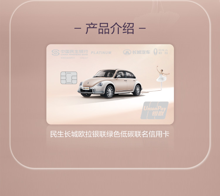 “民生信用卡”微信公众号-额度·办卡-我的特权-产品权益-“民生长城欧拉银联绿色低碳联名信用卡新客首刷送购车优惠券”