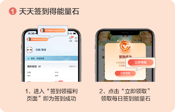 每日签到夺宝 做任务得能量石 能量石兑好礼
