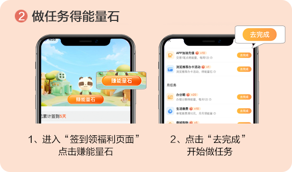 2. 任务完成统计仅针对已注册全民生活APP的客户,能量石领取仅限民生信用卡持卡客户