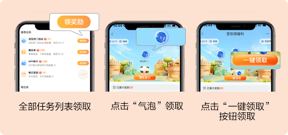 - *单任务领取:点击页面单任务“领奖励”可完成领取,领取后可实时到账。