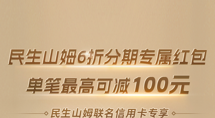 - (1)全民生活APP-精选-民生山姆联名信用卡-100元分期红包专属权益;