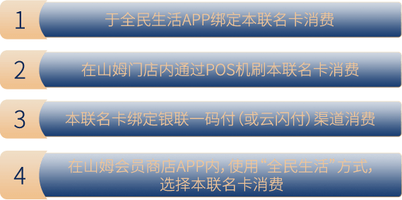 在山姆官方平台(中国境内山姆会员商店线下实体门店与山姆会员商店官方APP)通过以下支付方式进行的消费: