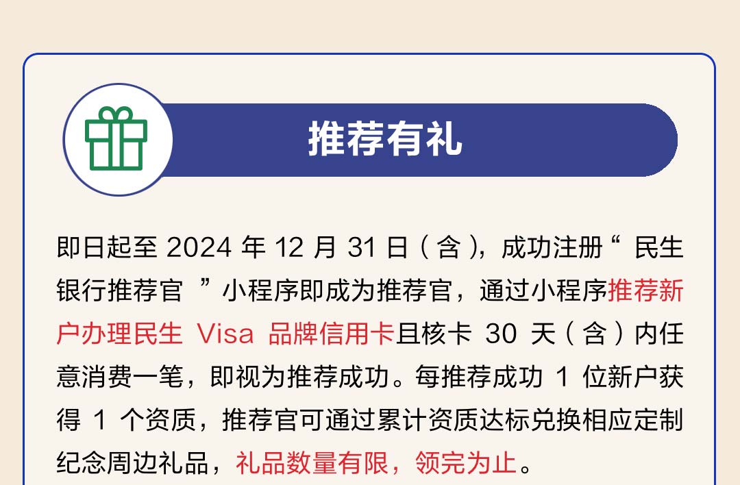 3、达标交易以入账消费为准,未入账消费不计算。消费时间及金额以民生银行系统记录为准。